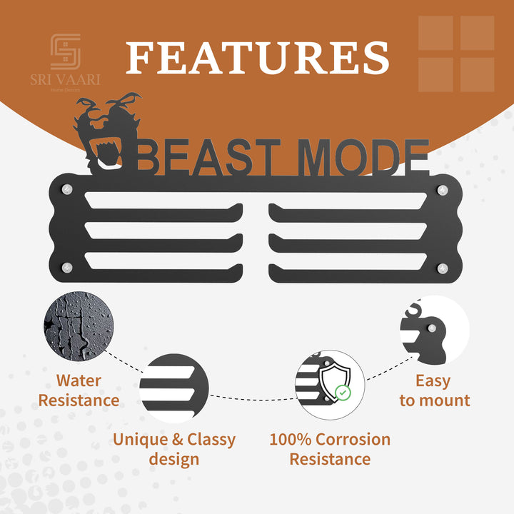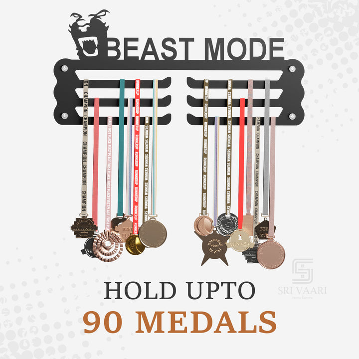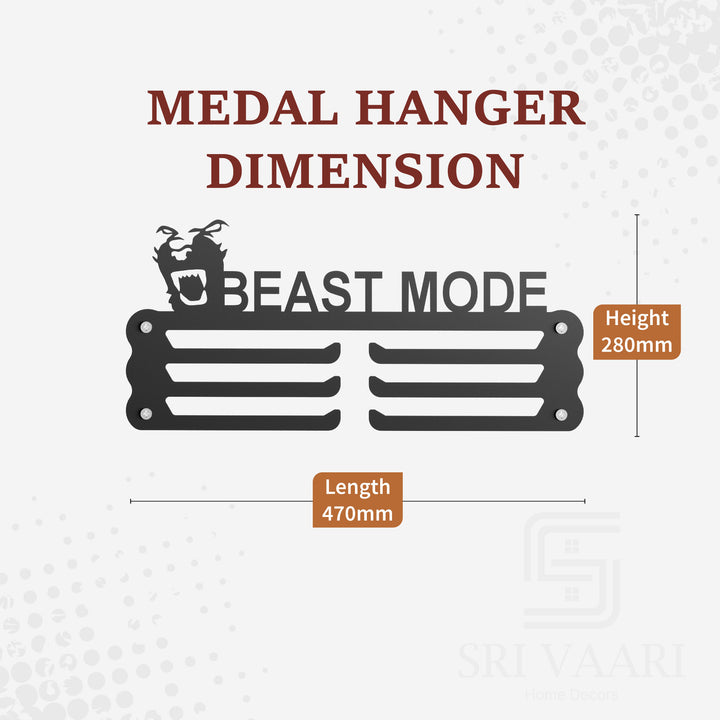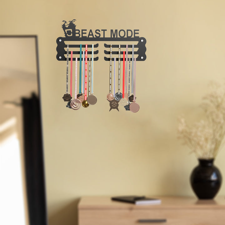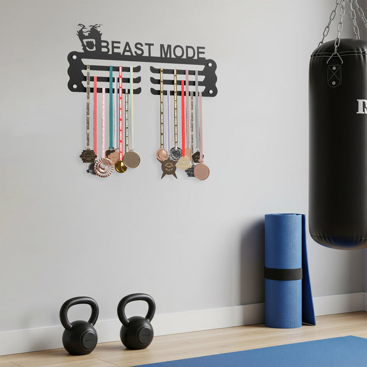 BEAST MODE - IRON PRIDE Medal Hanger (Holds 60+ Medals - 48 * 30 CM) | Premium Steel | Matte Black Finish