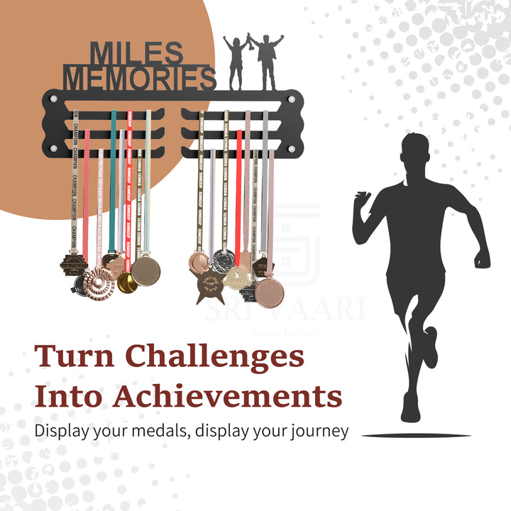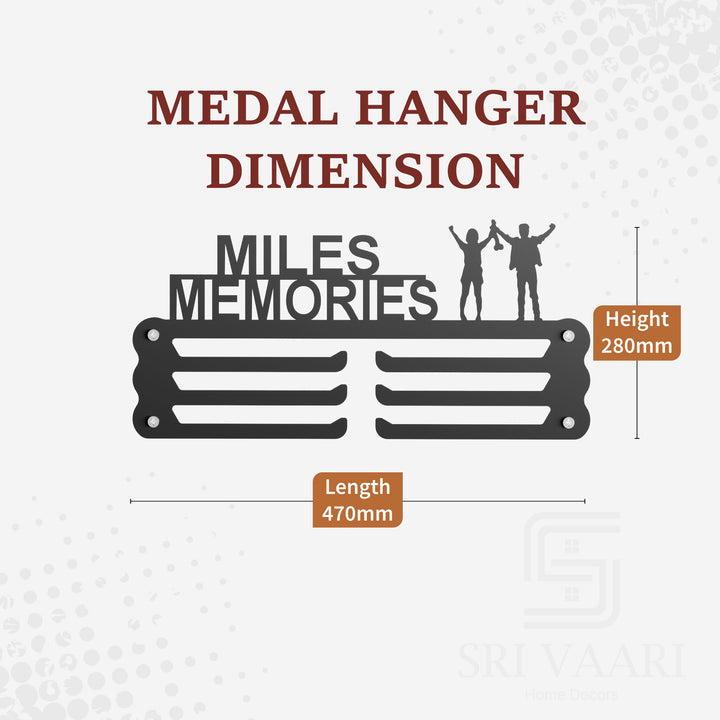 MILES MEMORIES Medal Hanger (Holds 60+ Medals - 48 * 30 CM) | Premium Steel | Matte Black Finish